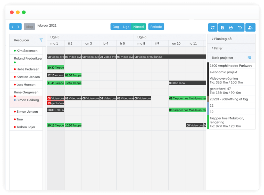 Gør det let at planlægge virksomhedens projekter. Med funktionen Planlægning får du overblik over virksomhedens medarbejderressourcer og de enkelte projekters tidsramme på en enkel og visuel måde.