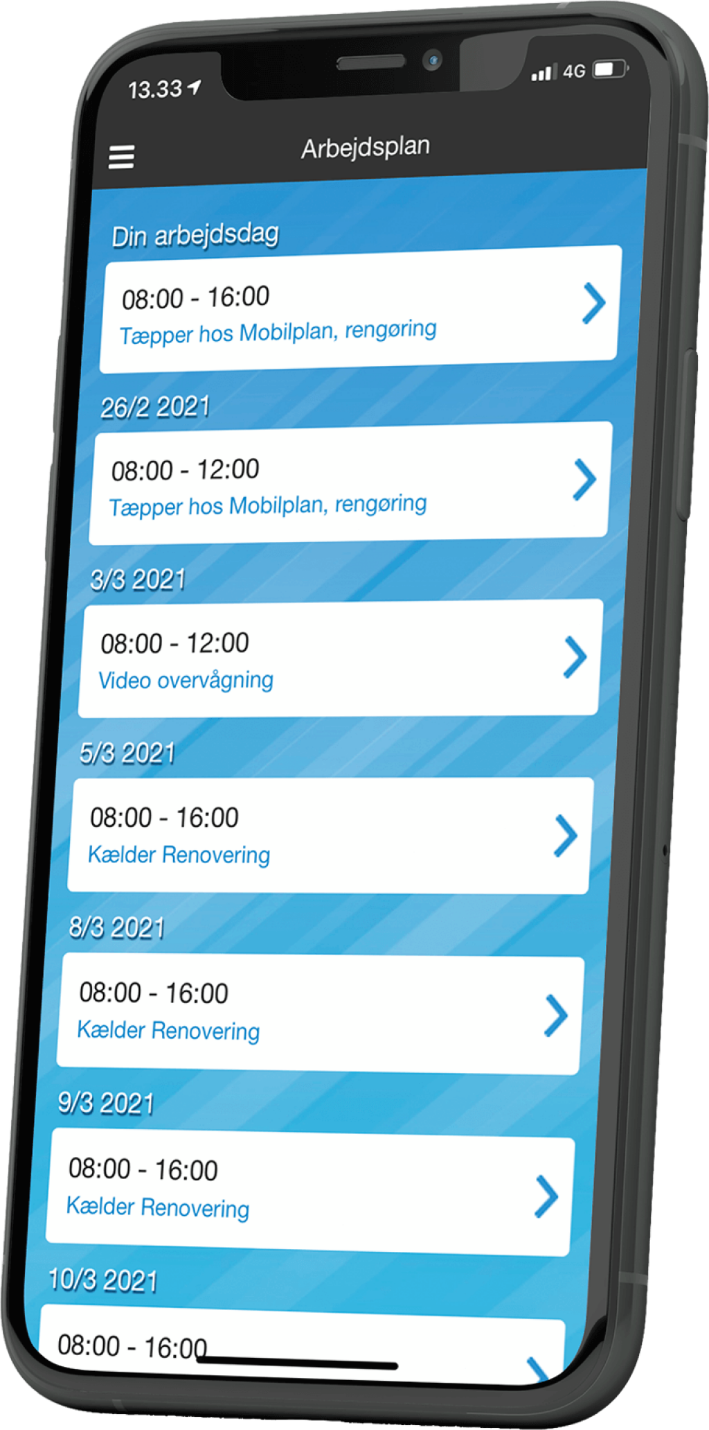 Når dine medarbejdere anvender Mobilplan-app’en, kan de hele tiden selv følge med i hvilke projekter, de skal arbejde på.
