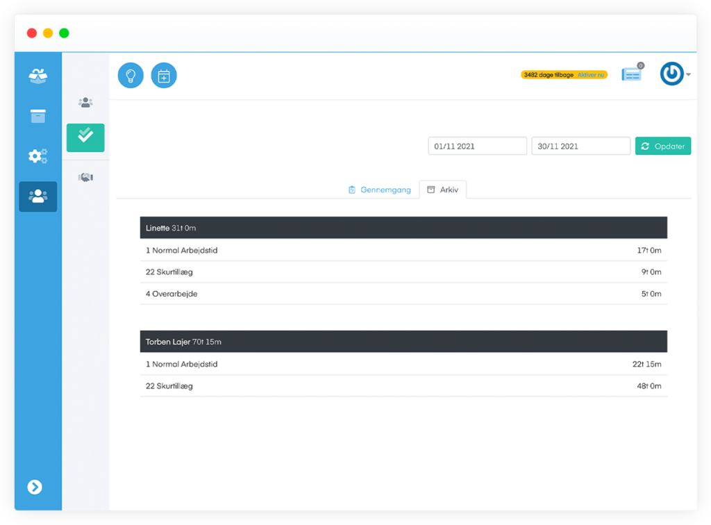 Når registreringerne er konverteret til lønlinjer ud fra Jeres specifikke lønregler godkendes de af den lønansvarlige og er nu klar til at blive overført til Jeres lønsystem. Fra lønsystemet udsender I herefter den korrekte og færdige lønseddel til medarbejderen.