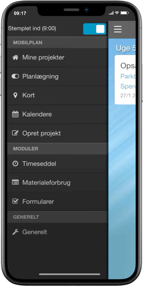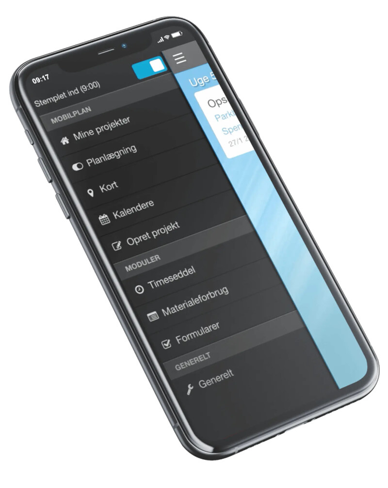 Frem for at have en timeseddel i papirformat liggende i bilen eller lommen skal dine medarbejdere have Mobilplans app installeret på en tablet eller smartphone. Når medarbejderne står ude i marken og skal i gang med deres arbejdsdag, går de ganske enkelt ind på app’en og taster starttidspunktet direkte under det projekt, de er i gang med. N